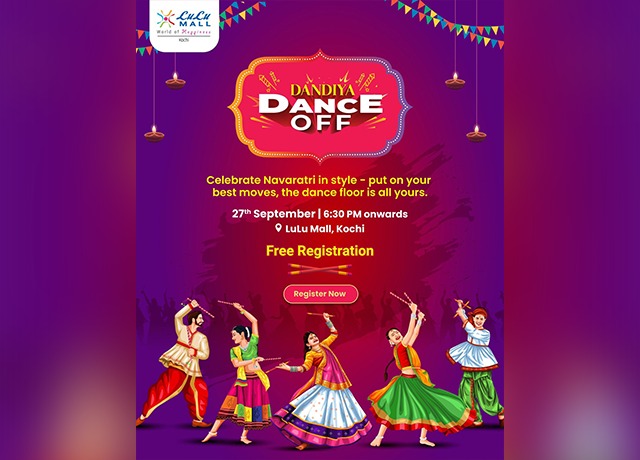 The countdown to the beats has begun! 💃🔥 Join us at LuLu Mall, Kochi on 27th September, 6:30 PM onwards for the ultimate Dandiya Dance Off. Learn from and dance alongside a set of professional dancers – and let the rhythm guide you!