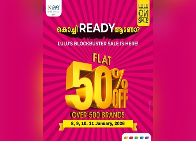 കൊച്ചി READY ആണോ? The LOS season has arrived with a bang. 💥 We are slashing prices across LuLu Mall, Kochi – now grab a FLAT 50% OFF on over 500 of your favourite brands. Whether you are upgrading your wardrobe or your home, this is the time to shop big. Mark the dates from 8th to 11th January! 🛍️