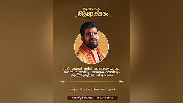 Let them write and begin their journey right, this Vijayadashami. 🌸✨ Guided by the presence of Shri. Swami Udit Chaitanya, may your little one’s first step into the world of knowledge be as beautiful as it should be.