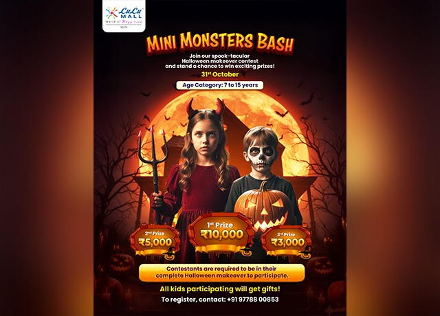 Calling all little monsters, ghouls and goblins of Kochi! ๐ป๐ Get ready to look scarily good at our Mini Monsters Bash! A spook-tacular Halloween fancy dress contest where your kids can unleash their creativity and stand a chance to win amazing cash prizes. Hurry now – only limited spots available. All participants must come to the venue fully dressed in their Halloween costume and makeup to be eligible for the contest. Register now and let the hauntingly goodย timesย begin!